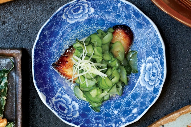 Мисо-вяленая черная треска с охлажденными огурцами