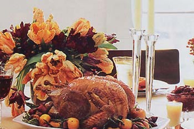 Жареная индейка с начинкой из деревенской ветчины и соусом из потрохов