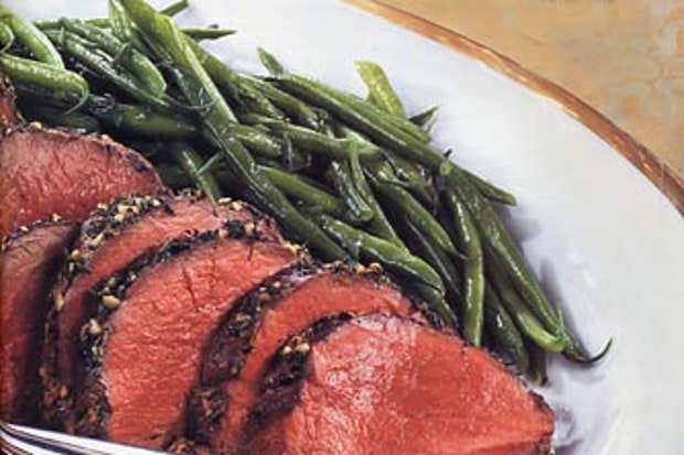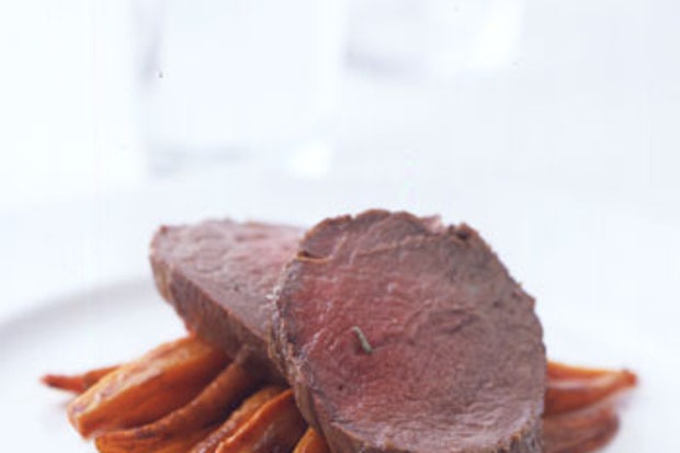 Жареная Говяжья вырезка с травами и специями и соусом из красного вина и лука-шалота