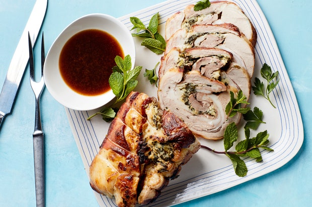 Провансальская жареная с чесноком тушеная телячья грудка с весенней начинкой