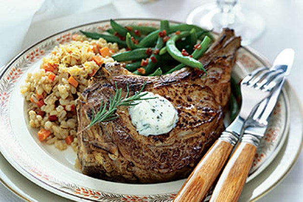 Телячья корейка, фаршированная болгарским перцем, козьим сыром и базиликом