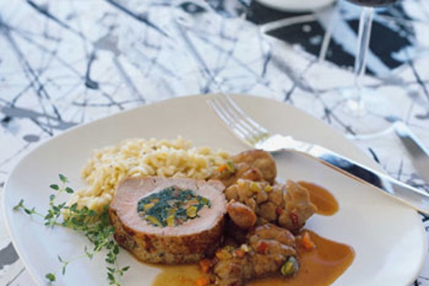 Фаршированная овощами корейка телятины со сладким хлебом