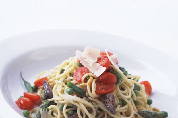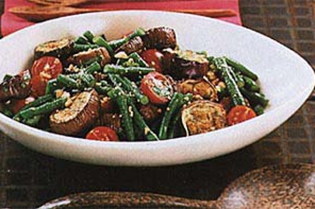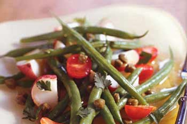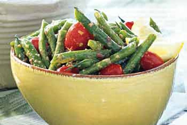 Салат из зеленой фасоли и виноградных помидоров с винегретом Каламата
