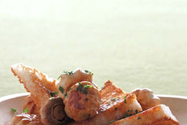 Едва приготовленный лосось с полентой из пармезана и грибным консоме