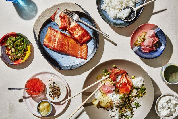 Котлеты из лосося с имбирем и Быстросолеными огурцами