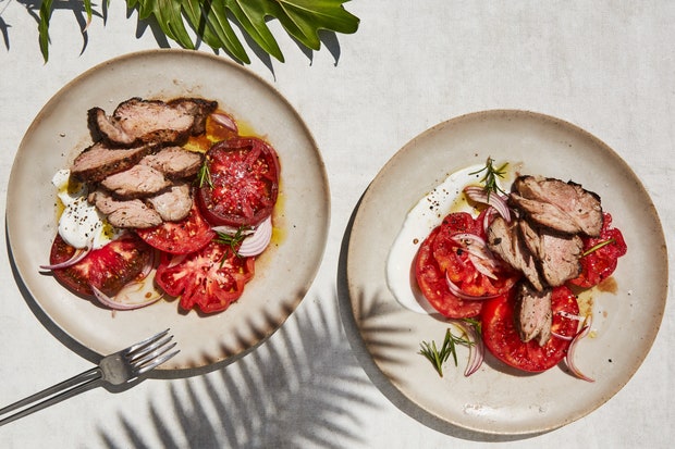 Жареная баранина с розмарином и сочными помидорами